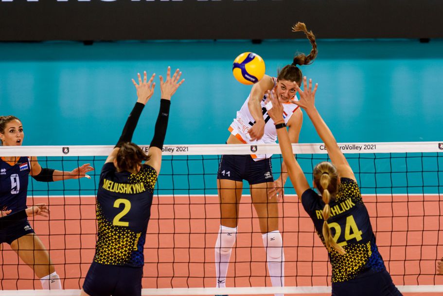 Женският национален отбор на Нидерландия започна с лесна победа участието си на Евроволей 2021. Волейболистките на легендата Авитал Селинджър биха безпроблемно Украйна, водена от българския специалист Владимир Орлов, с 3:0 (25:17, 25:12, 25:22) в първия си мач от Група D на първенството, игран тази вечер пред над 500 зрители в зала "БиТи Арена" в Клуж-Напока (Румъния).
