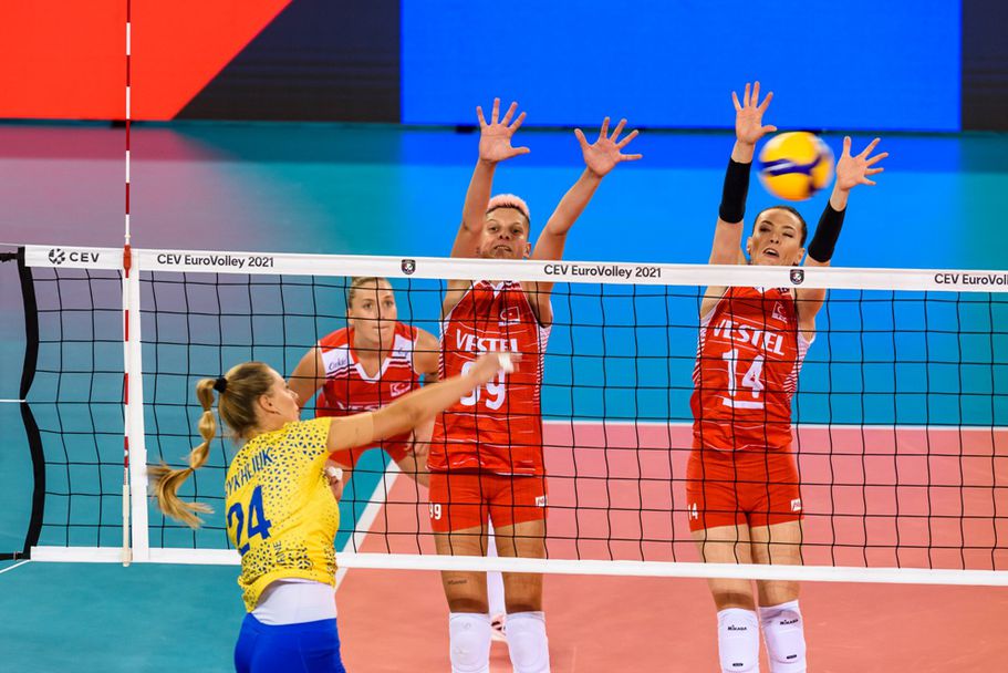 Волейболистките на Турция записаха втора поредна победа на Европейското първенство. Момичетата на Джовани Гуидети надиграха Украйна, водена от българския специалист Владимир Орлов, с 3:0 (25:14, 25:19, 26:24) във втората си среща от Група D, играна тази вечер пред малко над 300 зрители в зала "БиТи Арена" в Клуж-Напока (Румъния).
