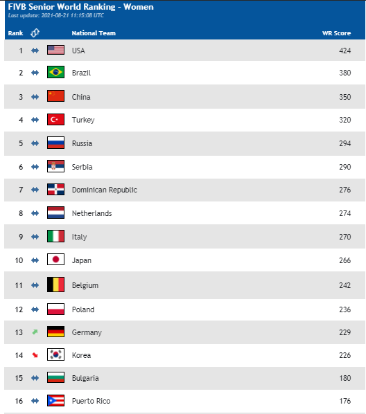 Първата тройка отново е заета от тимовете на САЩ, Бразилия и Китай.