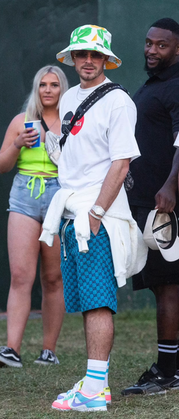 Английският национал заложи на спортен стил, който завърши с шапка на цветя и кецове с нежни цветове.