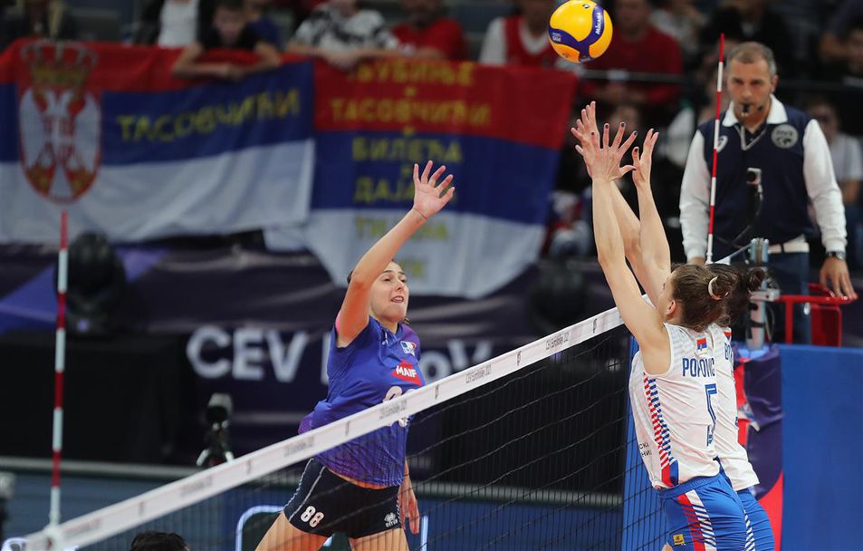 Действащите шампионки от Сърбия ще продължат да защитават титлата си и на финалната четворка на Евроволей 2021. Момичетата на Зоран Терзич направиха обрат и се наложиха над Франция с 3:1 (22:25, 25:18, 25:7, 25:20) в последния 1/4-финал на шампионата, игран тази вечер пред близо 7000 зрители в зала "Щарк Арена" в Белград.
