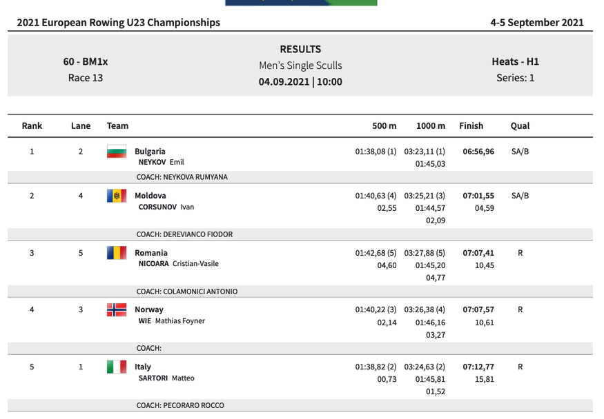 Втори остана Иван Корсунов от Молдова с време 7:01.55 минути и също се класира за полуфиналите.