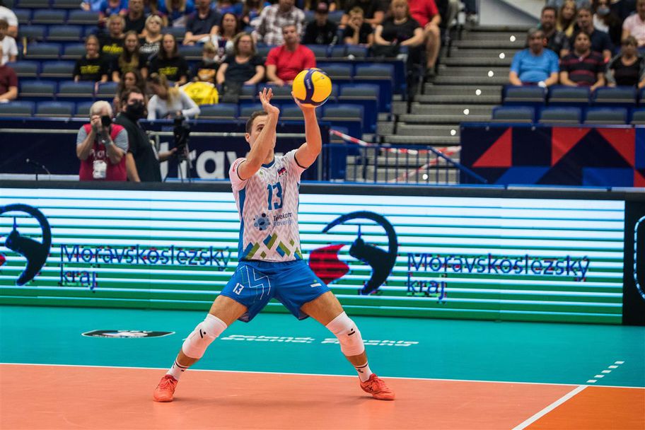Европейските вицешампиони от 2019 година от Словения записаха първа победа в Група В на Евроволей 2021 за мъже, след като вчера неочаквано отстъпиха на домакина Чехия с 1:3.