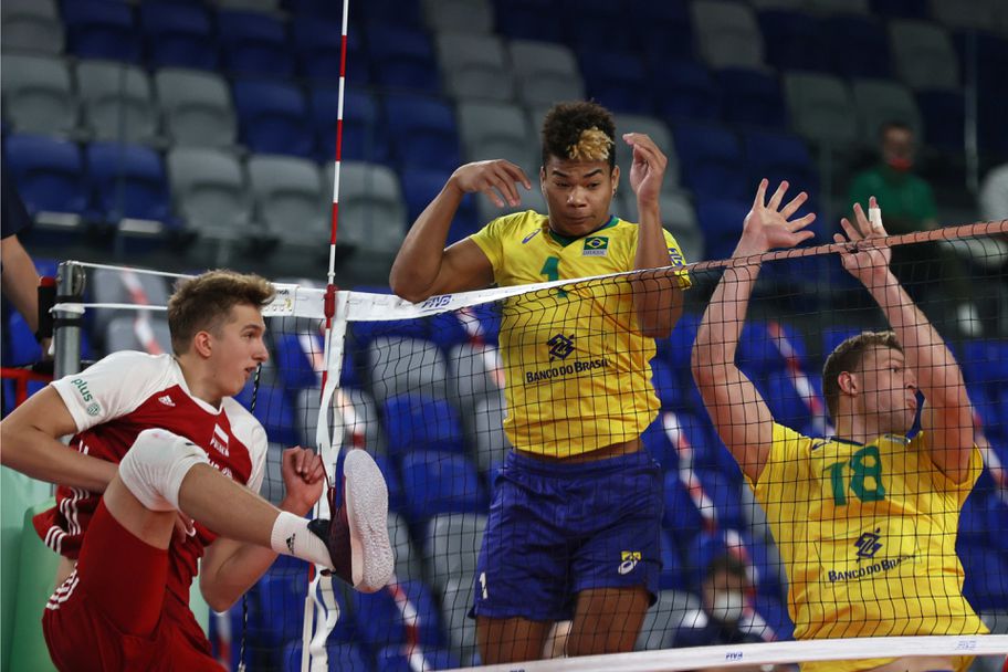 Волейболистите на Полша победиха Бразилия с 3:1 (28:26, 25:23, 19:25, 25:23) в зала „Левски София“ в мач от първия кръг на Група F на световното първенство за младежи до 21 години, на което са домакини България и Италия.