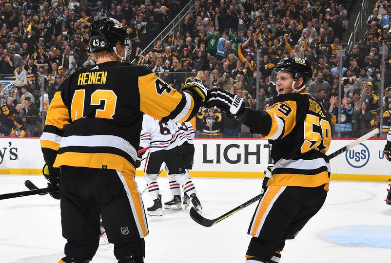 Дрю О'Конър вкара първия си гол в НХЛ, Дантън Хайнен записа своя трети в три мача, а Питсбърг се наложи с 5:2 над Чикаго.