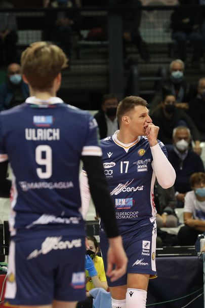 РАВЕНА: Матеуш Биернат, Нийлс Клапвайк 17, Александър Ляфтов 3, Марко Вукашинович 8, Алекс Ерати 2, Франческо Фузаро 1 – Рикардо Гои-либеро (Матео Пирацоли-либеро, Лука улрих 9, ДИМИТЪР ДИМИТРОВ, Милан Песлач, Никола Кандели 2)