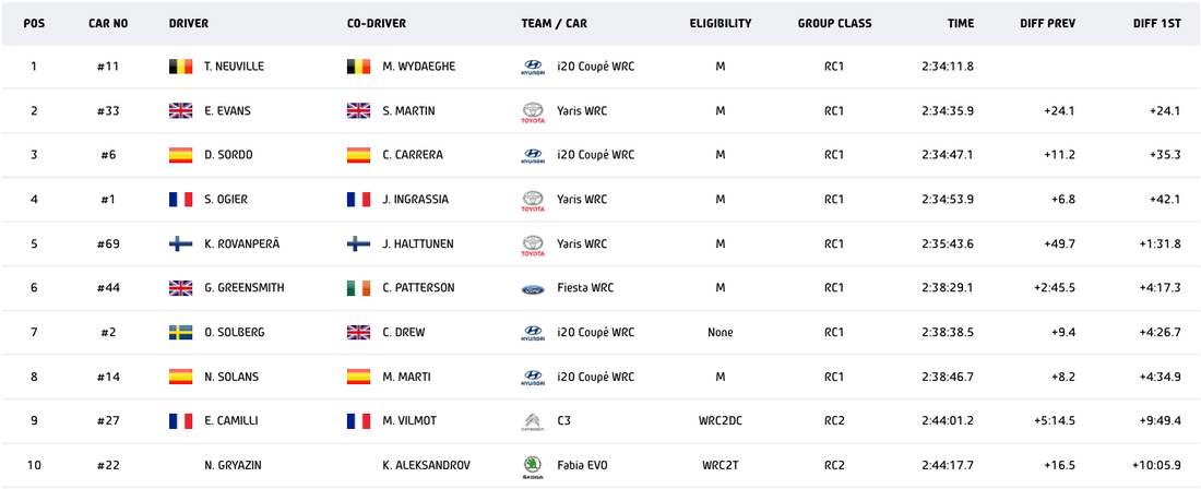 Белгиецът бе най-бърз в десет от 17-те етапа на базираната в Каталуния надпревара и заслужено стигна до успеха с аванс от 24.1 секунди спрямо Елфин Евънс (Toyota). Второто място на уелсецът му бе напълно достатъчно да удължи спора за титлата през този сезон, след като Себастиен Ожие (Toyota) завърши четвърти в Испания. Освен това Евънс взе и с една точка повече от „бонус етапа“, като така разликата между него и седемкратния първенец бе намалена на 17 точки.