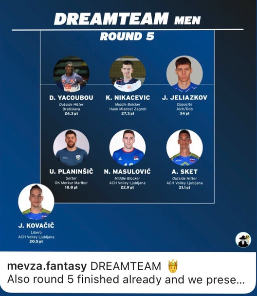 В Идеалния отбор на кръга попадат още известни волейболисти като Ален Скет, Урош Планинчич и Яни Ковачич.