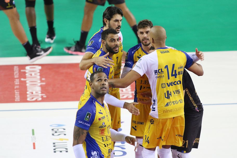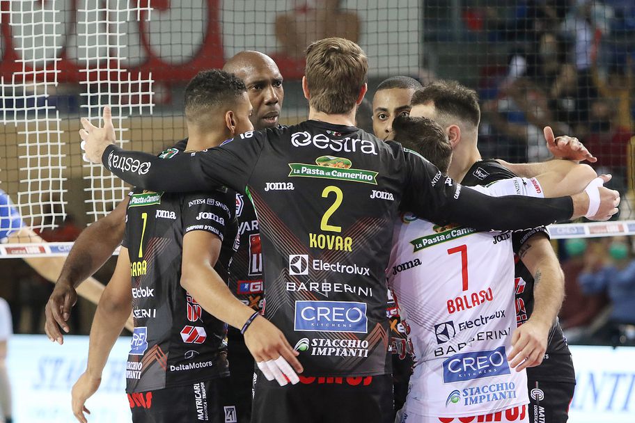 В дербито на 6-ия кръг шампионите от Кучине Лубе (Чивитанова) обърнаха Лео Шуус ПеркинЕлмер (Модена) с 3:1 (22:25, 29:27, 25:19, 30:28) пред 2360 зрители в Eurosuole Forum.