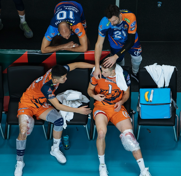 В 4-ата част на мача при резултат 14:16 Алексей Обмочаев получи внезапна контузия на коляното.