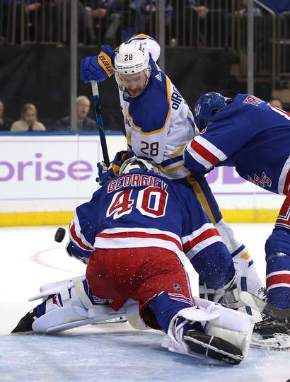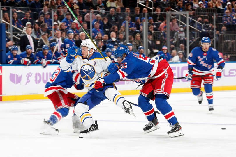 Защитникът Райън Линдгрен отбеляза драматичния гол секунда преди финалната сирена, за да донесе успеха на Ню Йорк Рейнджърс над гостуващия Бъфало Сейбърс с 5:4.