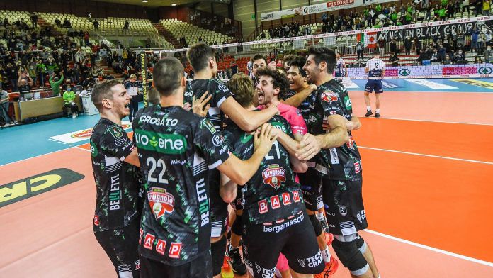 Възпитаниците на Якопо Кутини губеха с 0:2 гейма, но съумяха да постигнат пълен обрат и да победят Газ Сейл Блуенерджи (Пиаченца) с 3:2 (20:25, 21:25, 25:22, 25:23, 15:8) в мач от 7-ия кръг в „Киоене Арена“.