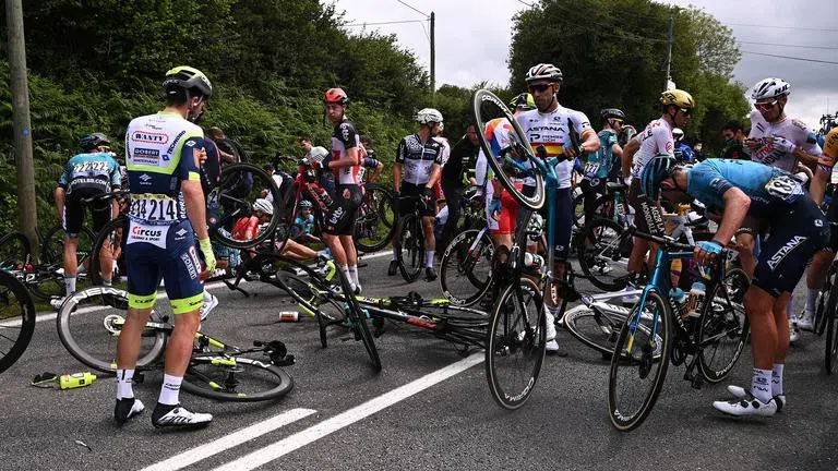 Жената, чието име не се съобщава, събори повече от половината колона в състезанието, след като излезе на пътя, държейки огромен надпис за камерите, без да обърне внимание на приближаващите с висока скорост колоездачи. Жената по чудо не пострада при инцидента, но германецът Тони Мартин се заби в табелата и, падна на земята, а след него среща с асфалта имаха и десетки други колоездачи, част от които отпаднаха от състезанието заради получените травми.
