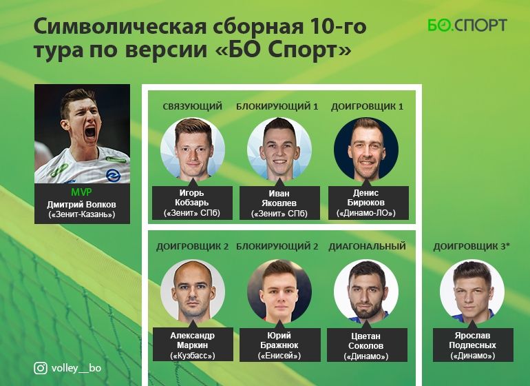 Капитанът на националния отбор на България и диагонал на шампиона динамо (Москва) Цветан Соколов попадна в Идеалния отбор на 10-ия кръг на Суперлигата на Русия на авторитетното издание “БО Спорт”.