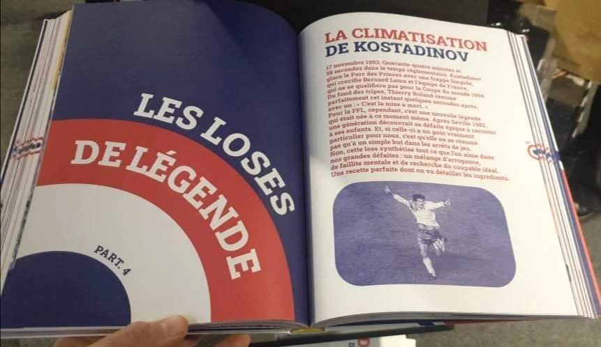 На корицата на луксозното издание съвсем ясно се отличава вдигналият победоносно ръце Костадинов, секунди след второто му попадение във вратата на Бернар Лама на 17 ноември 1993 г. Книгата съдържа 200 страници и е с цена 30 евро. Евтимов споделя, че тази библия на френските спортни поражения е най-търсеният коледен подарък в най-големия френски магазин за подаръци - Fnac, в който се предлагат техника, книги, музика и др.