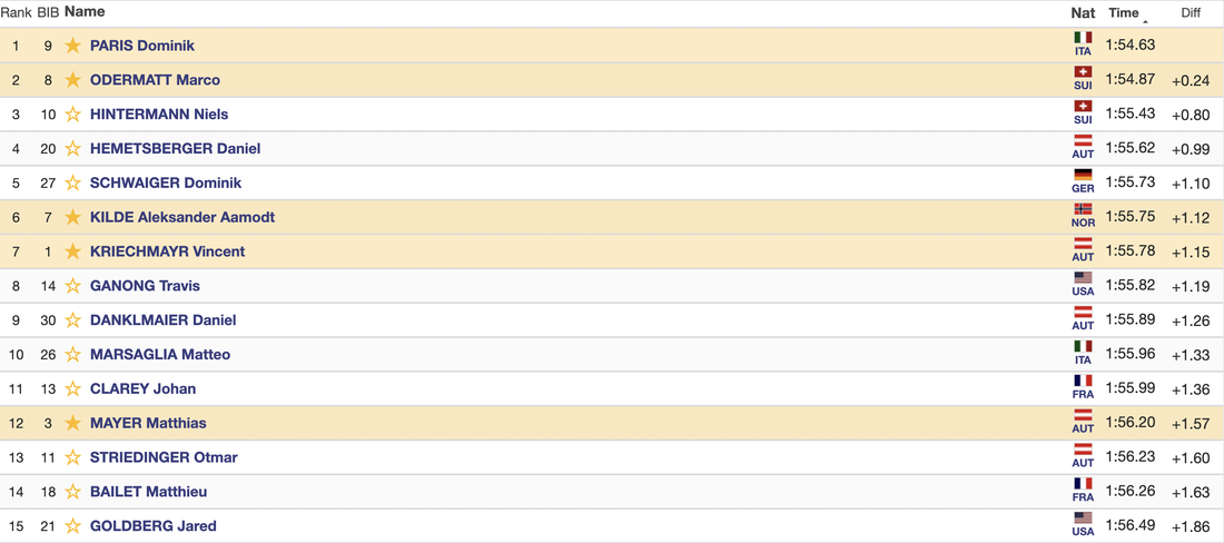 До момента първата място бе споделяно от Парис и легендарния швейцарец Дидие Кюш, който има пет успеха на друго класическо спускане, а именно това на „Щрайф“ в Китцбюел. За Парис победата му днес е общо 20-а в кариерата в Световната купа, като всички те са дошли или в спускане, или в супергигантски слалом.