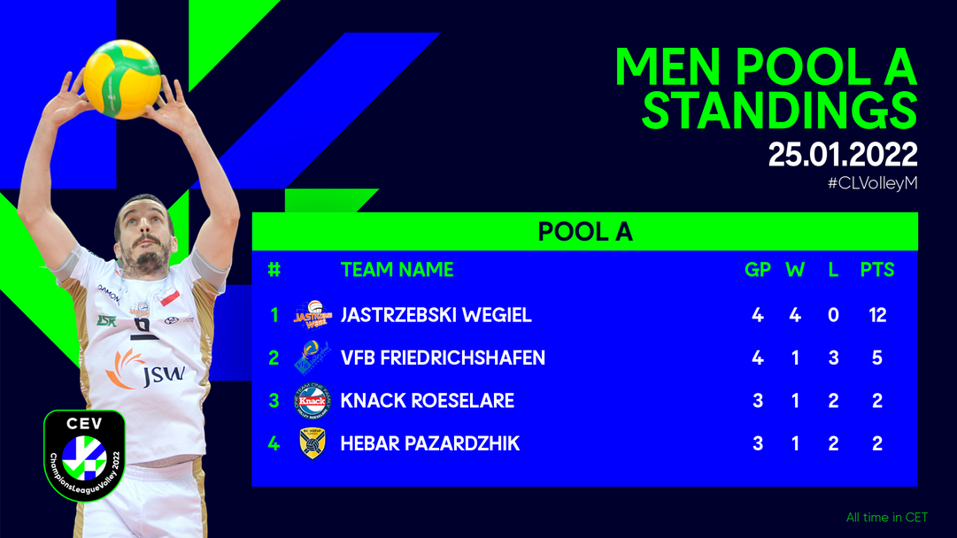 Рафал Шимура стана най-резултатен за Ястрежебски Венгел с 14 точки (1 ас, 62% ефективност в атака, 21% перфектно и 39% позитивно посрещане - +8). Чешкият диагонал Ян Хадрава добави 13 точки (1 ас, 52% ефективност в атака - +9).