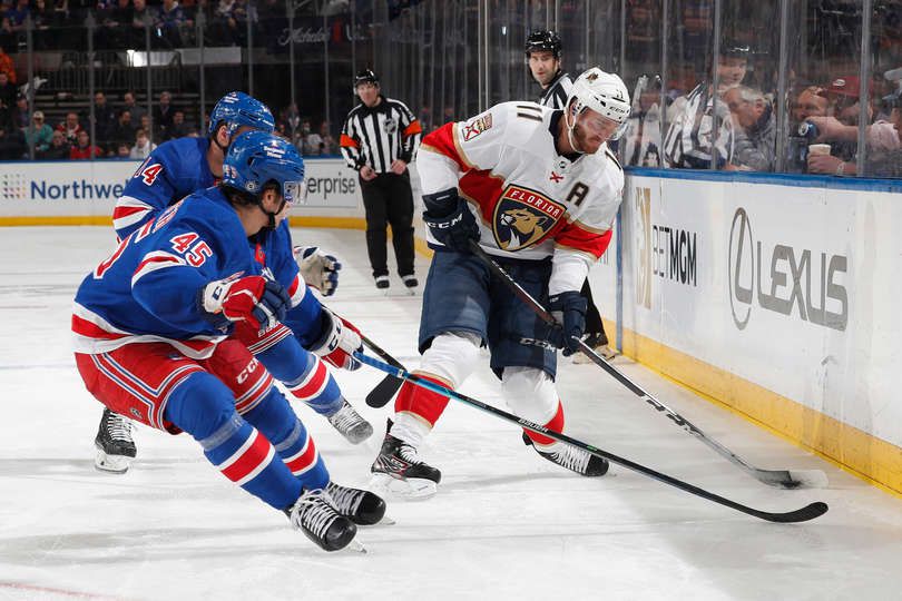 Отборът на Ню Йорк Рейнджърс, който е втори в Централната дивизия, се изравни по точки с лидера Каролина Хърикейнс след успех с 5:2 над водача в Атлантическата дивизия Флорида Пантърс.