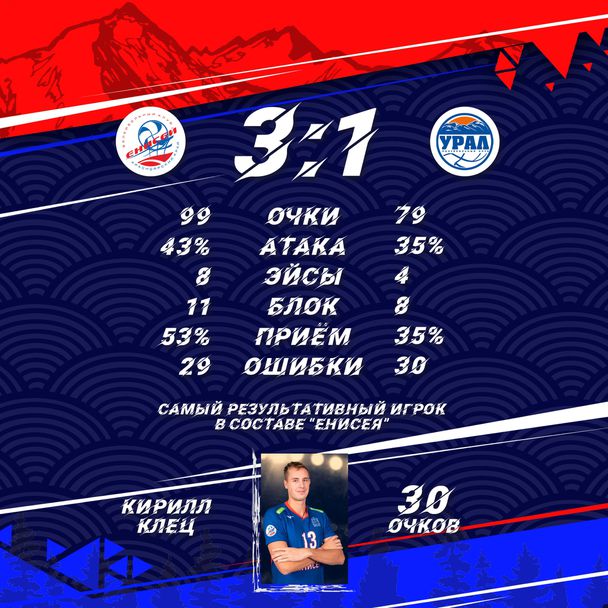ЕНИСЕЙ (КРАСНОЯРСК) - УРАЛ (УФА) 3:1 (25:17, 25:17, 24:26, 25:15)