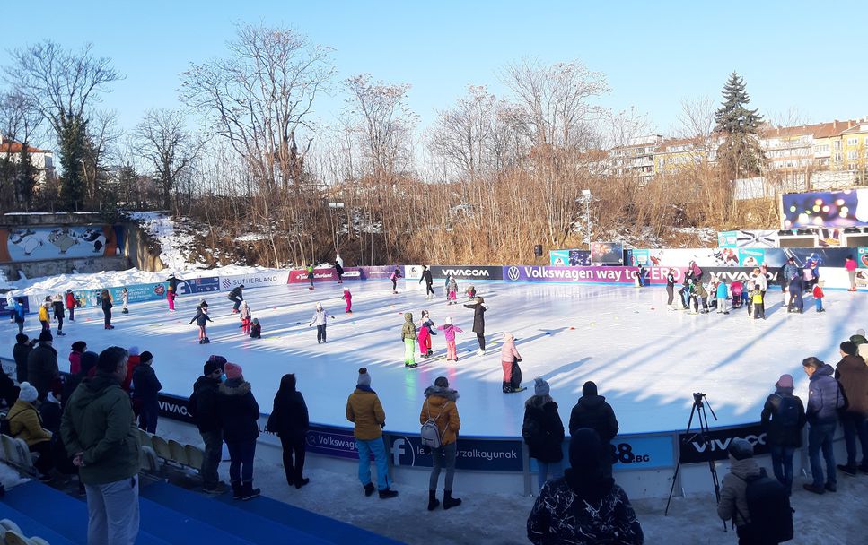 Над 60 деца участваха в безплатна тренировка по кънки с трикратната олимпийска медалистка по шорттрек Евгения Раданова, многократния шампион и треньор по фигурно пързаляне Найден Боричев и специалисти от клуб "Айс Пик".