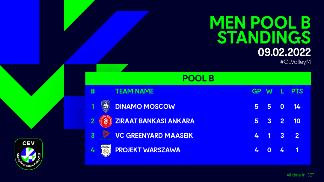 Динамо има актив от 14 точки (5 победи) и вече се класира на 1/4-финалите, Пройект е четвърти с 1 точка (4 поражения).