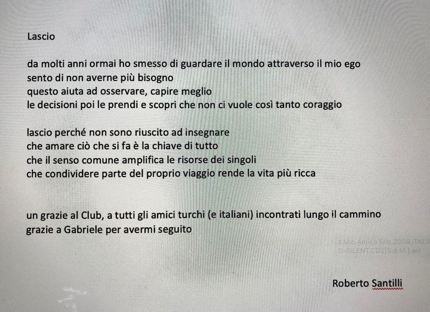 Роберто Сантили написа специално писмо, с което благодари за работата си в клуба и пожела успех на отбора в бъдеще.