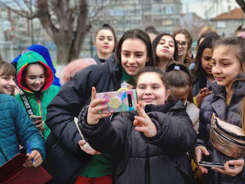 Неописуемо вълнение се възцари по време на раздаването на автографи от Мадлен и снимките за спомен със златния медал от Токио 2020.