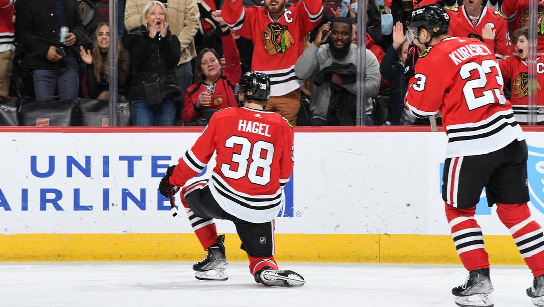 Патрик Кейн се отличи с три гола и асистенция, а Брендън Хагел добави хеттрик при успеха на Чикаго с 8:5 над гостуващия Ню Джърси в среща от редовния сезон на Националната хокейна лига.