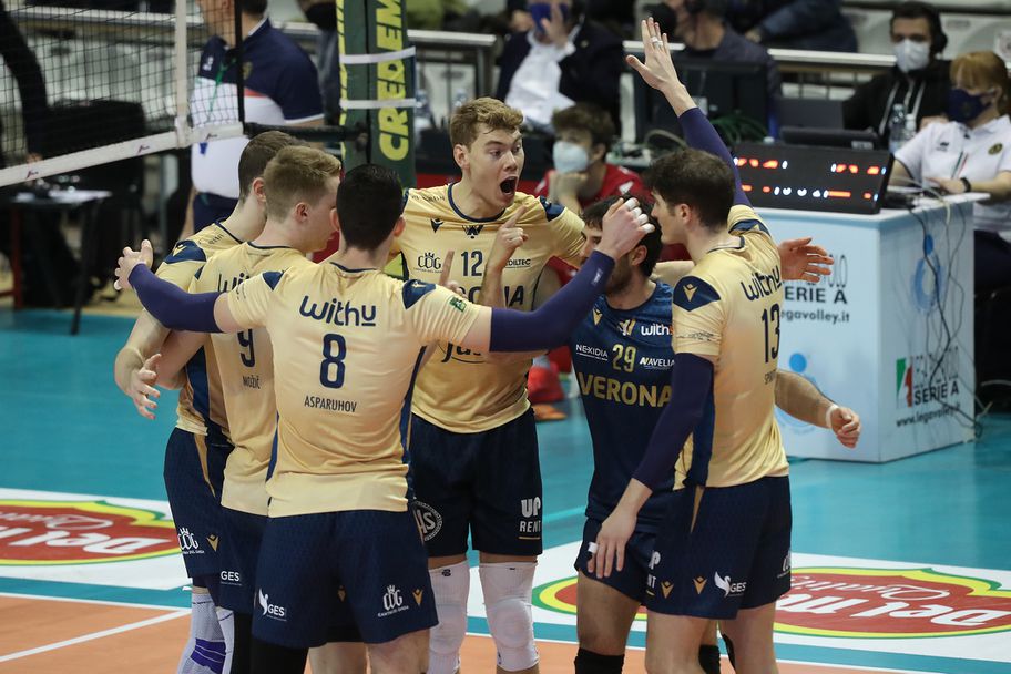 ВЕРОНА: Лука Спирито 1, Мадс Йенсен 21, АСПАРУХ АСПАРУХОВ 10, Рок Можич 24, Жона Ажение 9, Лоренцо Кортезия 9 - Федерико Бонами-либеро (Рафаел Де Оливейра, Джулио Магалини 1, Андреа Дзаноти 2)