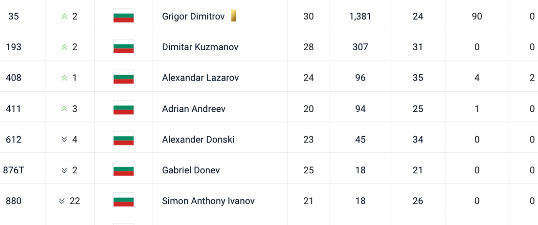Александър Лазаров вече е съвсем близо до рекордния си ранкинг (№405), намирайки се на 408-а позиция, а Адриан Андреев напредва с три места, до №411 с 94 точки.