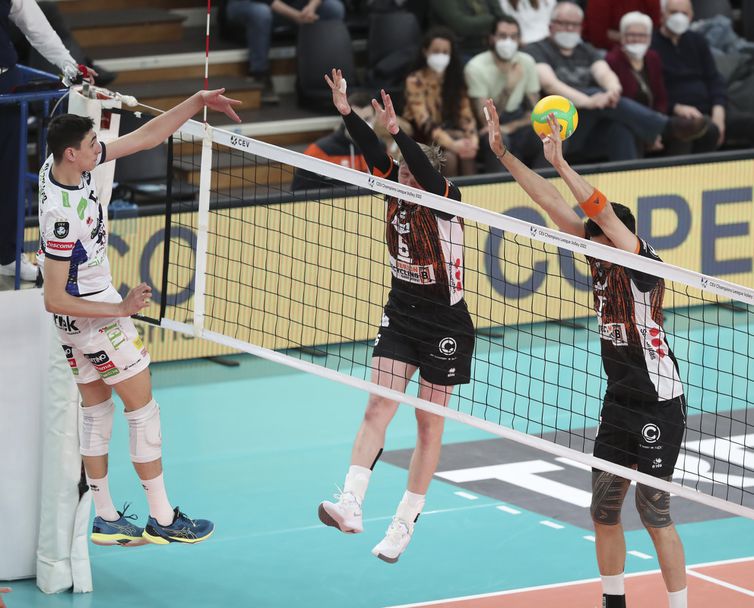 Воденият от Анджело Лоренцети отбор надигра Берлин Рисайклинг Волейс с 3:0 (27:25, 25:19, 25:22) в първия мач от 1/4-финалналите, който се игра пред 1033 зрители.