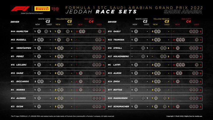Карлос Сайнц е единственият пилот, стартиращ сред първите десет, който разполага с чисто нови меки гуми за надпреварата за Гран При на Саудитска Арабия. Испанецът може да се възползва от това си предимство още в самото началото на състезанието, в което той да се опита да поведе от третата си позиция на решетката.