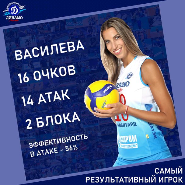 Елица Василава стана най-резултатна за московчанки със 17 точки (3 блока, 58% ефективност в атака, 39% перфектно и 67% позитивно посрещане - +10).