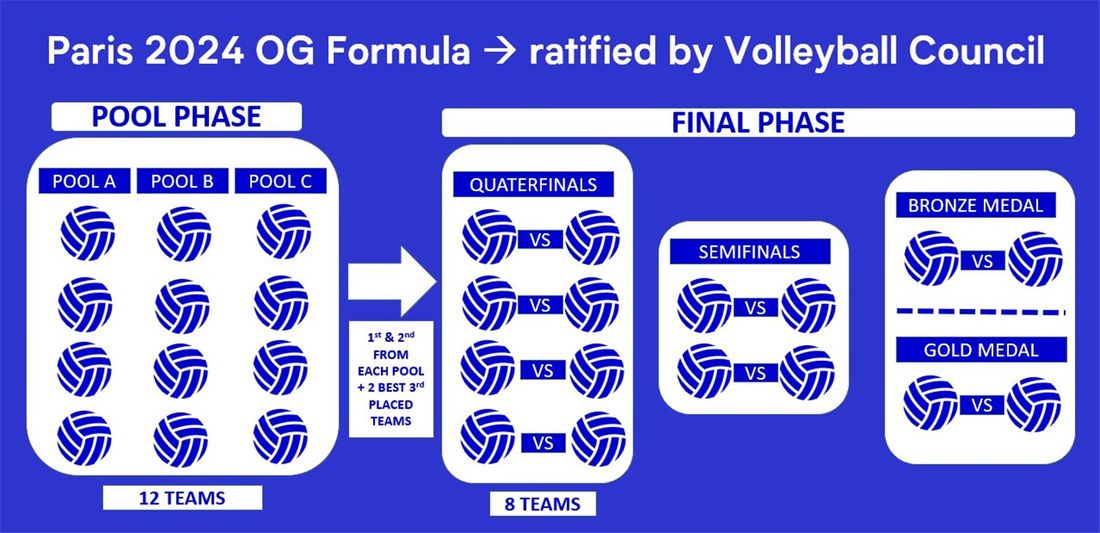 Ще има промяна и на формата на самия олимпийски волейболен турнир. Вместо 2 предварителни групи с по 6 отбора, ще бъдат 3 с по 4 тима, а напред ще продължат първите два от всяка плюс двата най-добри трети.