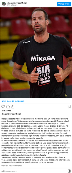 Френската звезда на Лео Шуус ПеркинЕлмер (Модена) Ървин Нгапет публикува 3 тежки и обидни постове срещу Драган в профила си в Инстаграм.