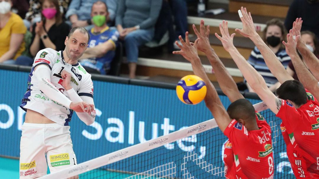 Воденият от Анджело Лоренцети отбор отстъпи у дома на шампиона Кучине Лубе (Чивитанова) с 1:3 (19:25, 29:27, 25:22, 25:22) в полуфинал №4, изигран в "BLM Group Арена" пред 3051 зрители.
