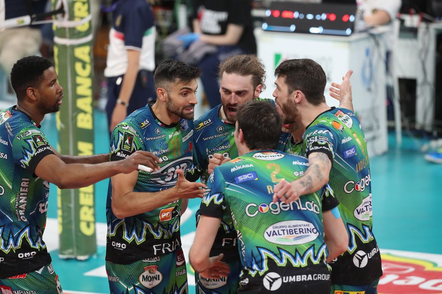 Воденият от Джанлоренцо Бленджини тим надделя трудно като гост над Сър Сейфти Конад (Перуджа) с 3:2 (25:17, 26:28, 20:25, 25:17, 15:13) в първия двубой от серията, изигран в "Пала Бартон" в Перуджа пред 3511 зрители.