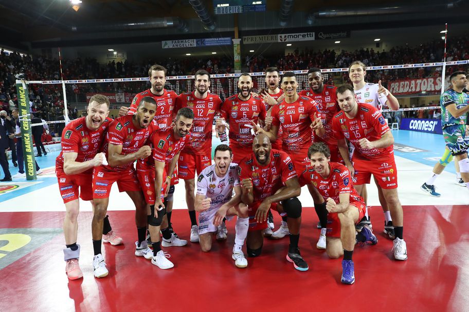 Шампионът в италианската Суперлига Кучине Лубе (Чивитанова) докосва трофея, след като надигра Сър Сейфти Конад (Перуджа) с 3:0 (25:21, 29:27, 25:22) във втория финален двубой помежду им, изигран в "Еуросуоле Форум" пред 3811 зрители.