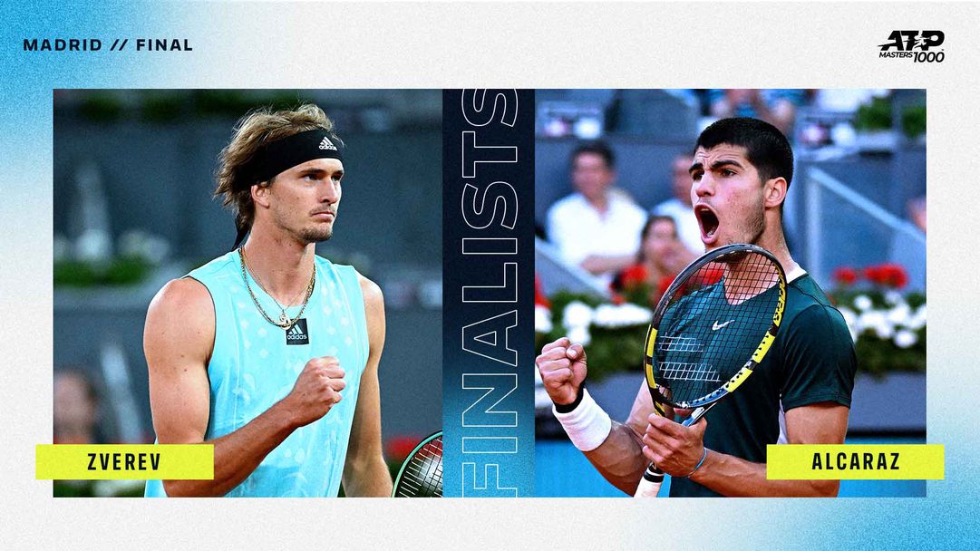 Защитаващият титлата си Александър Зверев (Германия) ще играе срещу испанеца Карлос Алкарас във финала на турнира по тенис от сериите „Мастърс“ на клей в испанската столица Мадрид с награден фонд 6,58 милиона евро.