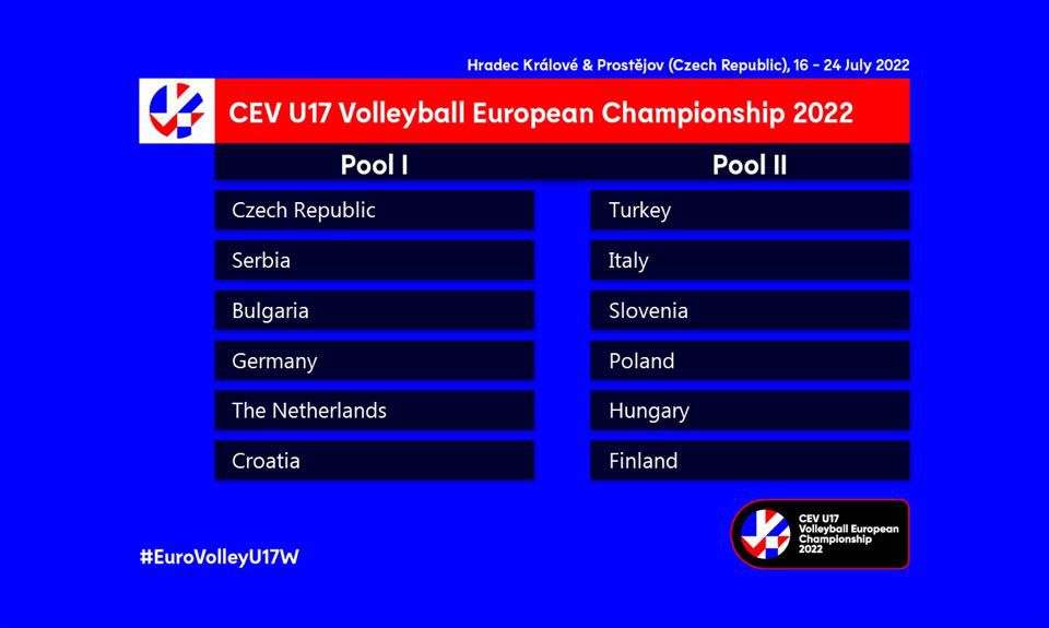 При девойките нашите са в група А. Техни съперници са Чехия Сърбия, Германия, Нидерландия и Хърватия. Селекцията ни е водена от Диян Боюклиев. В другата група са Турция, Италия, Словения, Полша, Унгария и Финландия. Турнирът е в Чехия от 16 до 24 юли.