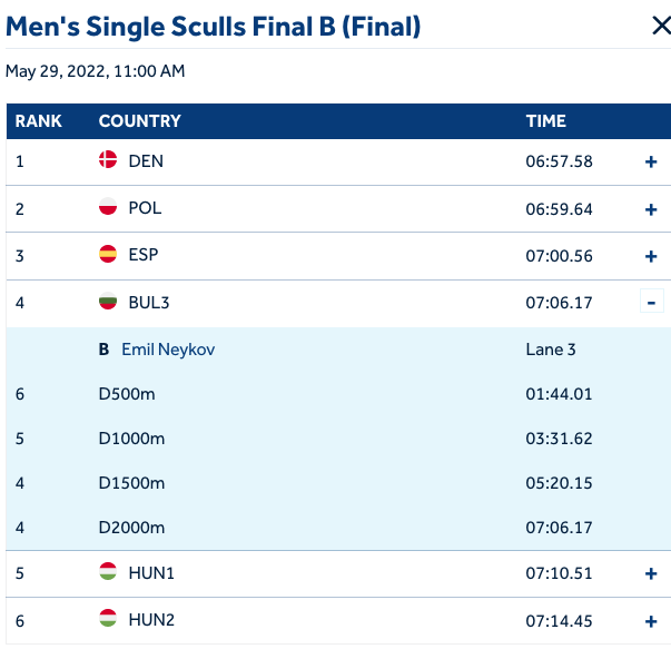Емил Нейков финишира 4-и на скиф при мъжете във Финал Б на първия кръг на Световнага купа по гребане в Белград (Сърбия).