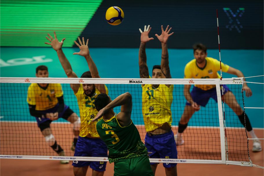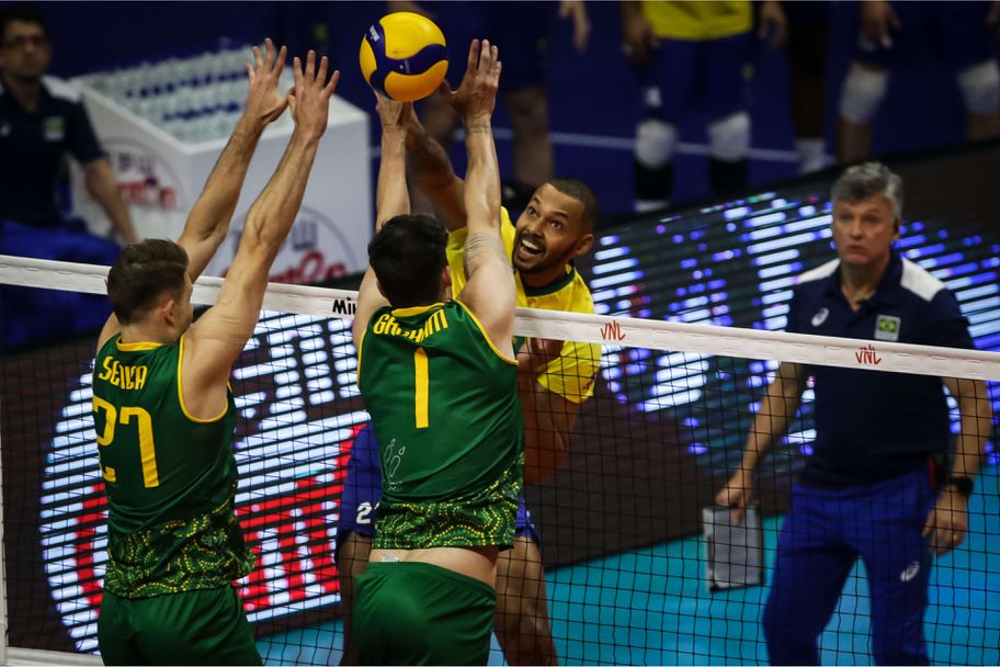 Действащият победител във Волейболната Лига на нациите при мъжете Бразилия започна с ударна победа защитата на титлата си. "Селесао" стартира с лесна победа над Австралия с 3:0 (25:14, 25:18, 25:21) в първия си мач от турнира в Група 1 от първата седмица на Лигата, на който са домакини, игран пред над 4200 зрители в зала "Арена БиАрБи Нилсон Нелсон" в столицата Бразилия.