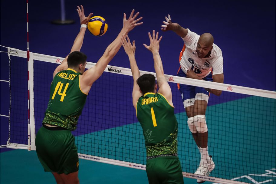 Волейболистите от националния отбор на Нидерландия записаха втора поредна лесна победа в тазгодишната Лига на нациите. Момчетата на италианския селекционер Роберто Пиаца биха категорично Австралия с 3:0 (25:20, 25:15, 25:23) в последната среща от турнира в Група 1 от първата седмица на надпреварата, играна тази вечер пред едва около 150 зрители в зала "Арена БиАрБи Нелсон Нилсон" в Бразилия (Бразилия).