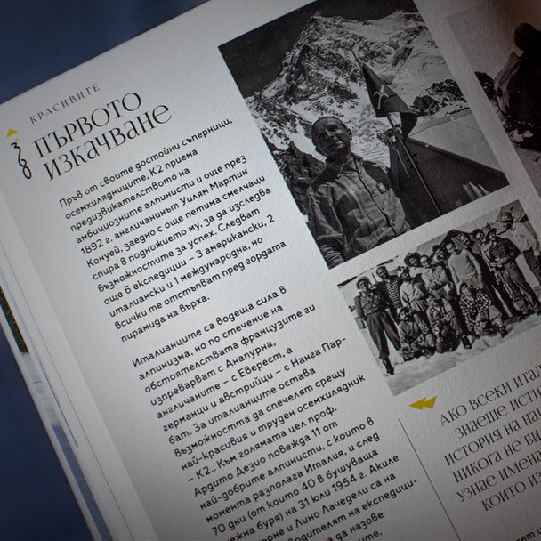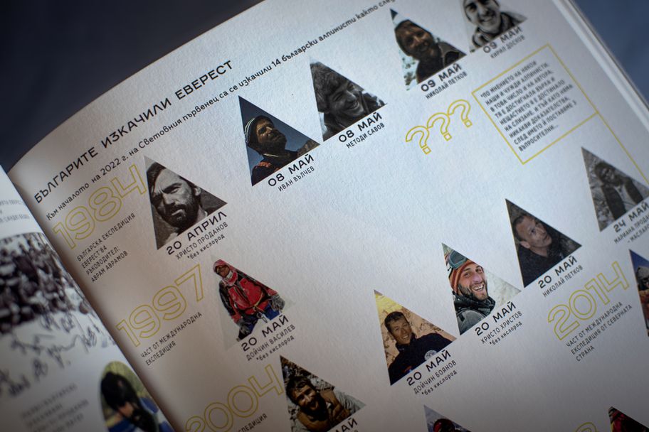 В първия етап от развитието на сайта ще намерите 20 от най-емблематичните върхове и над 1000 записа на техните първи изкачвания от българи. Страницата вече е отворена за редакция и надграждане, а добавяната от потребители информация първоначално ще се верифицира допълнително от доц.Бешев, за да се избегне появата на невярно съдържание”, разказва за идеята Иван Панчев, криейтив директор на 360mag.bg