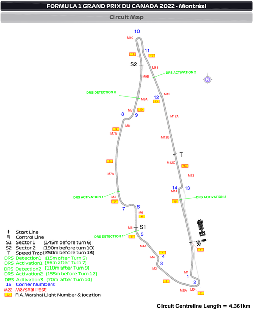 Както бе случаят при последните две издания на състезанията на „Жил Вилньов“ и през тази година пилотите ще могат да активират своята система DRS в три отделни зони на трасето.