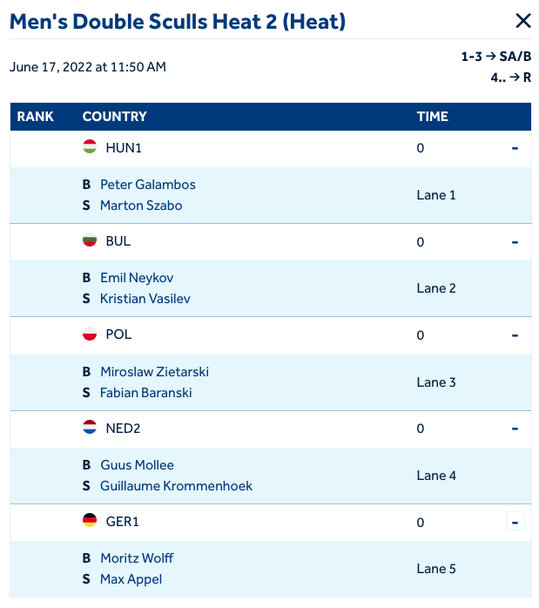 Новият ни екипаж в двойката скул при мъжете Кристиян Василев и Емил Нейков стартира утре в 12,50 часа в серия №2. Първите 3 лодки се класират на полуфинал.