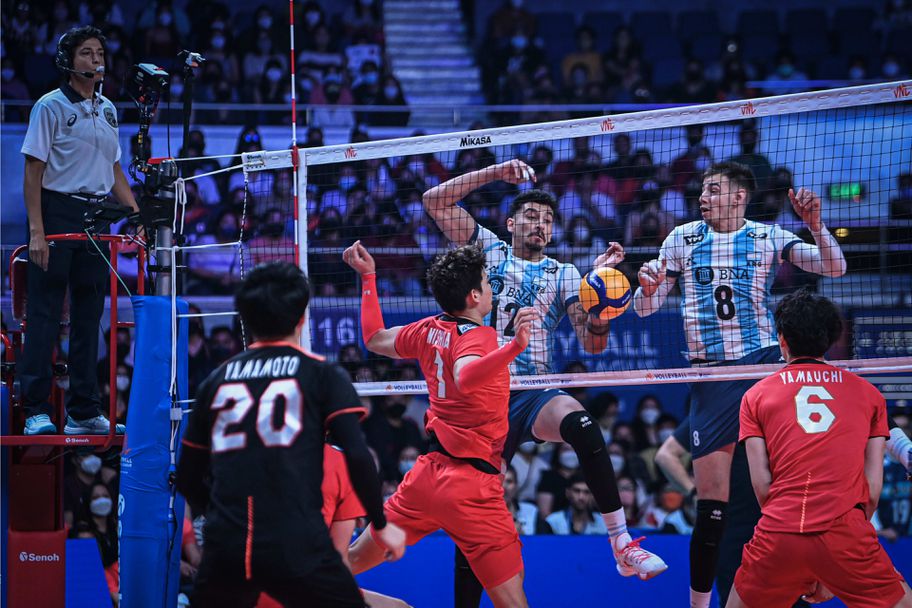Играчите от Страната на Изгряващото слънце записаха 4-а победа, след като се наложиха над бронзовите медалисти от Олимпийските игри в Токио 2020 от Аржентина с 3:1 (27:25, 25:18, 17:25, 25:16), пред 2895 зрители в зала “Смарт Аранета Колизеум” в Кесон Сити (Филипините) в първия мач от Група 3 на втория уикенд в турнира.