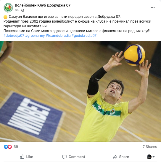 Самуил Василев ще носи екипа на Добруджа 07 за пети пореден сезон, потвърдиха от волейболния отбор от Добрич във вторник. Роденият през 2002 година талант играе на поста либеро.