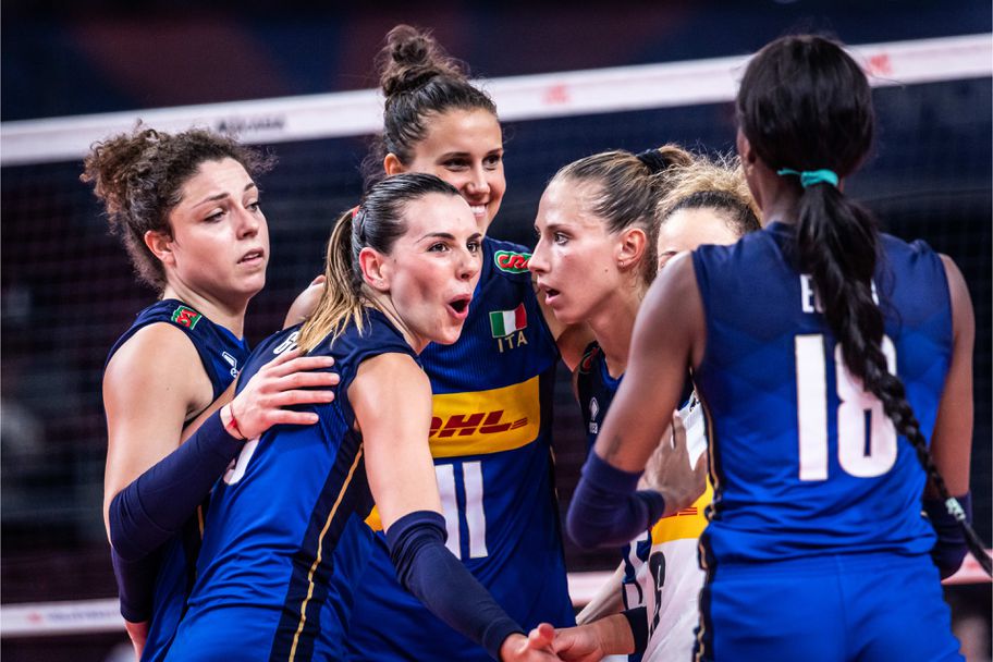 Европейският волейболен шампион Италия се класира предсрочно за финалния турнир на Лигата на нациите за жени. Момичетата на селекционера Давиде Мацанти обърнаха и се наложиха много трудно над Полша с 3:1 (25:27, 25:20, 28:26, 25:18) в първата си среща от турнира в Група 6 от последната състезателна седмица на надпреварата, играна късно снощи пред около 1000 зрители в зала "Арена Армеец" в София.