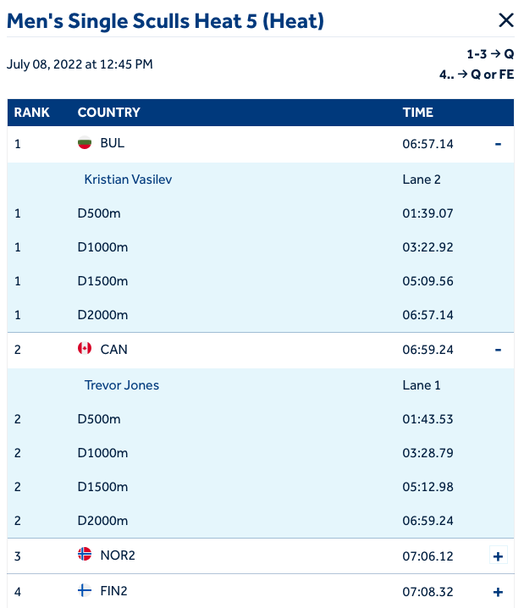 Василев спечели по убедителен начин 5-а предварителна серия на дисциплината скиф за мъже с време 6:57.14 минути и така се класира директно за участие на 1/4-финал.